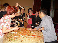 After "tossing the yu sheng. the floor was filled with the food. Practically they are throwing at each other instead of tossing!