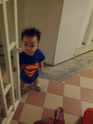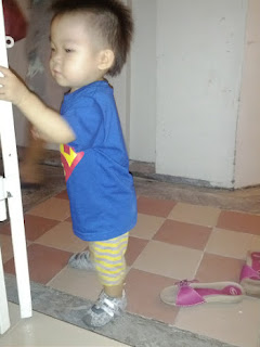 My cheeky boy while changing. Refused to stay still! Happily cruising around the room naked. HAHA.