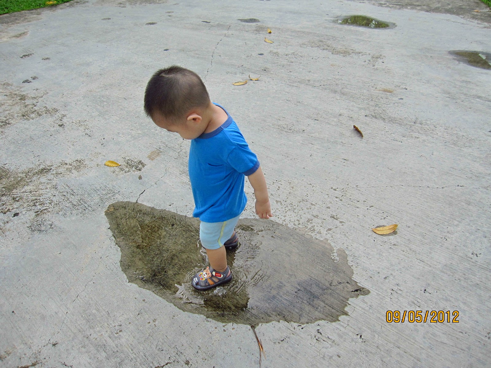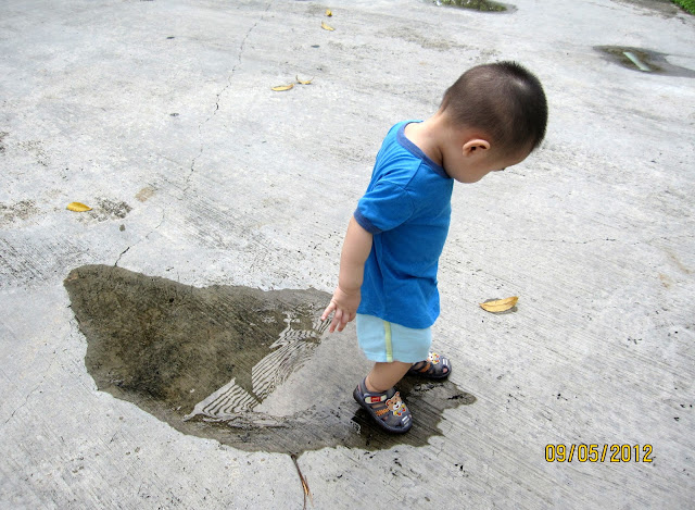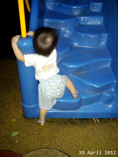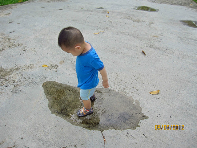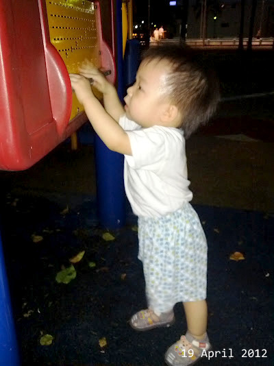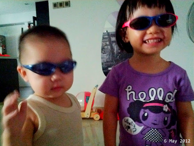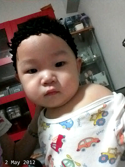 playing with my headband on Kieran head. He looks girlish with it. Is this how mei mei is going to look like? =)