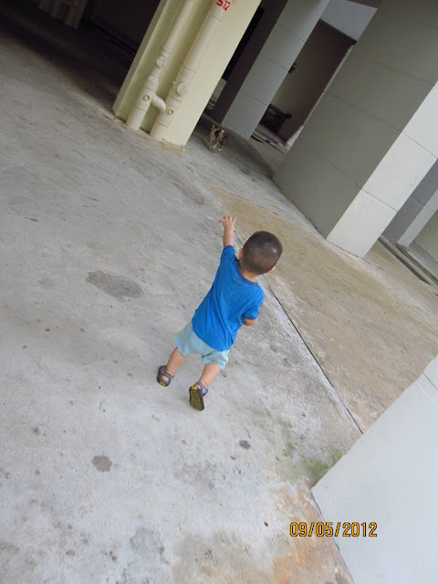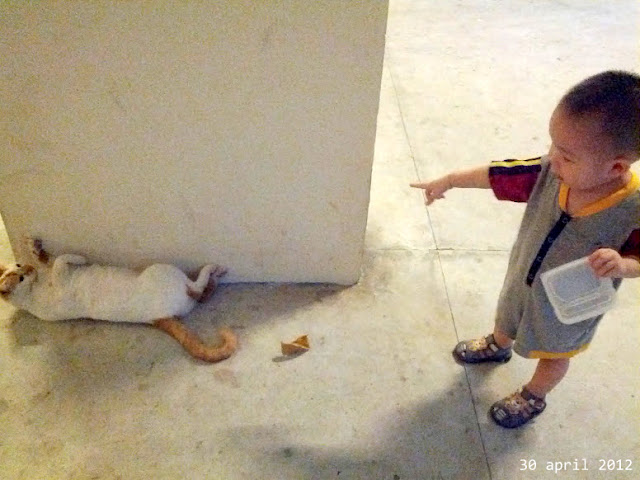 He even wants to stroke the cat! (but I pulled him away. was afraid that the cat scratch him.)
