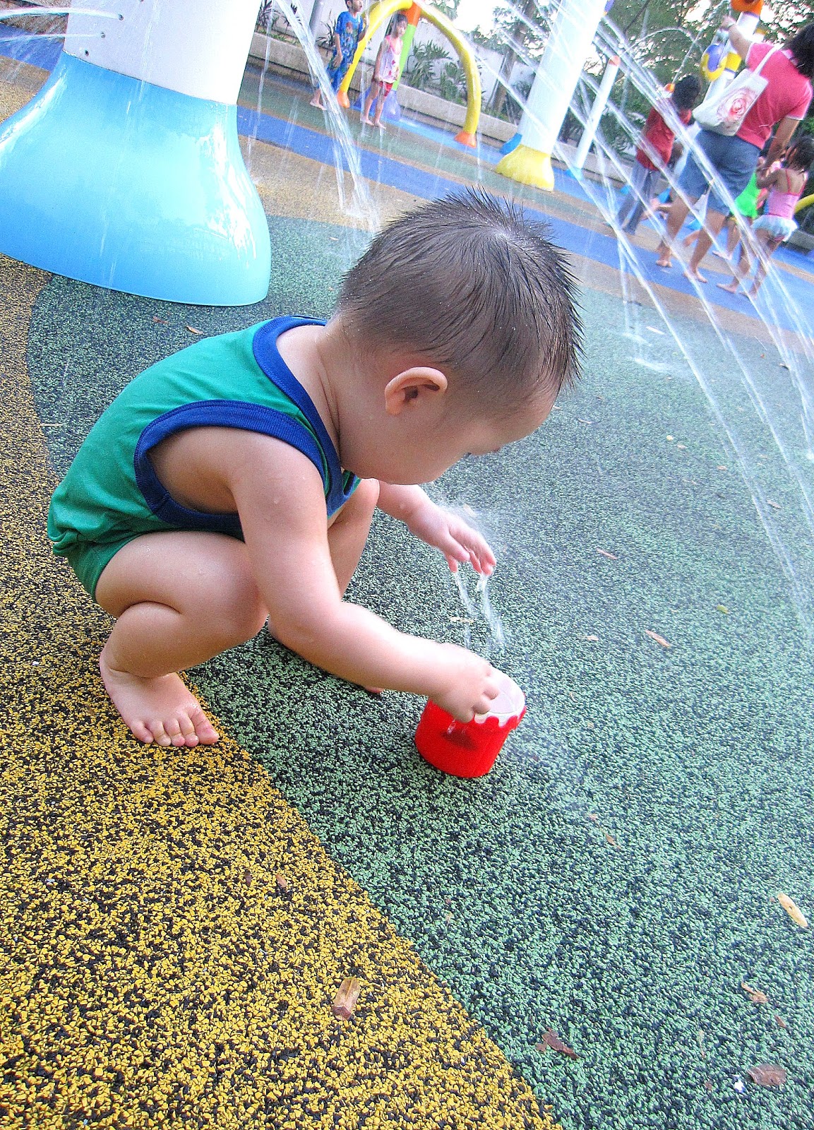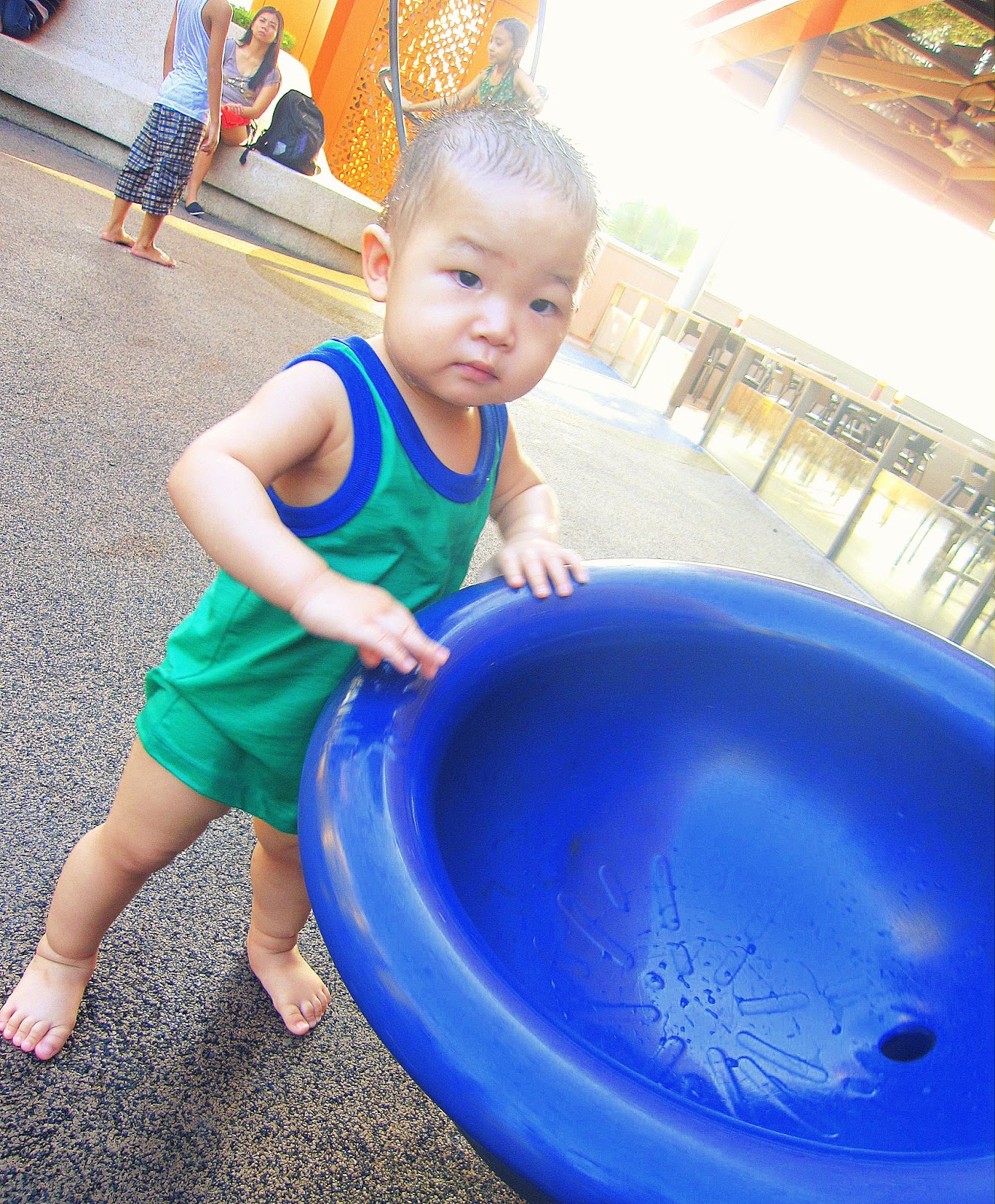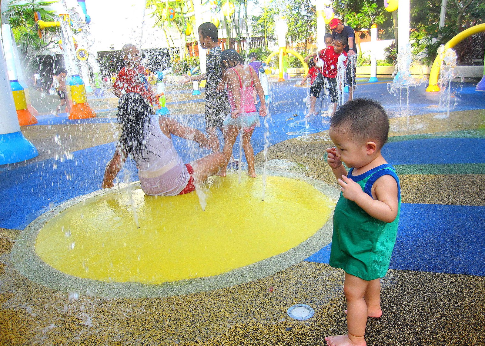 A fine Saturday with nice warm weather. Daddy Henry went for RT so mummy decided to bring Kieran to Splash Park for some splash and sploosh time! Been wanting to bring him there even before he was born. waited till he finally learnt to walk and my little wish was fulfilled!
