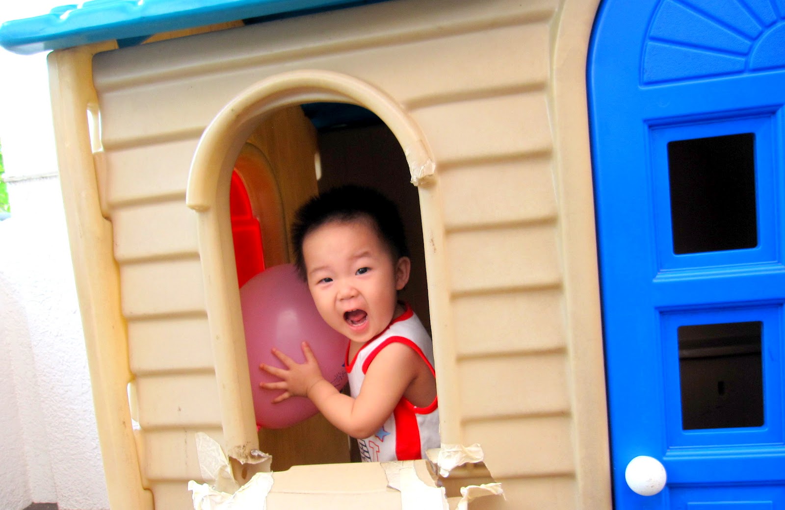 while on our way to the pool, he spotted this little playhouse, obviously he was tempted to go in.