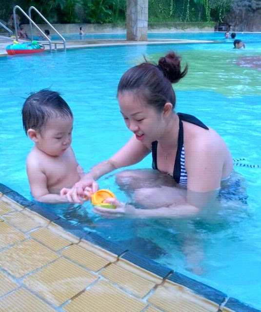Kieran's 1st time to Orchid Country Club Pool with mommy and Amy yiyi.