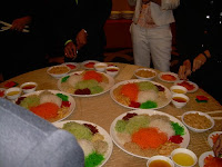 After "tossing the yu sheng. the floor was filled with the food. Practically they are throwing at each other instead of tossing!