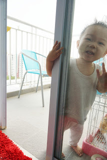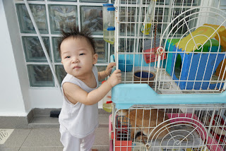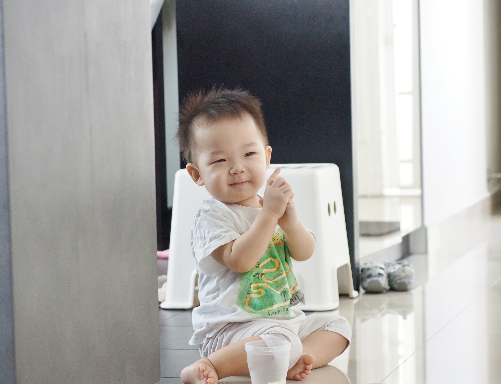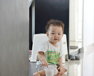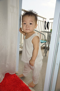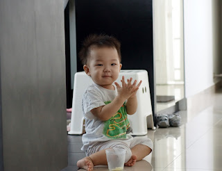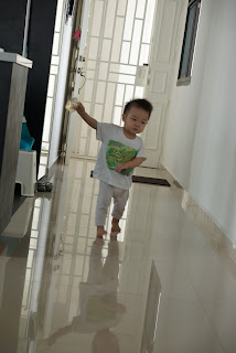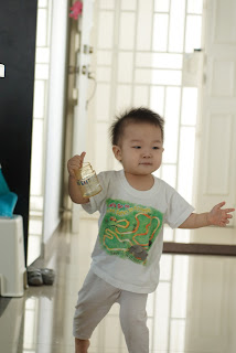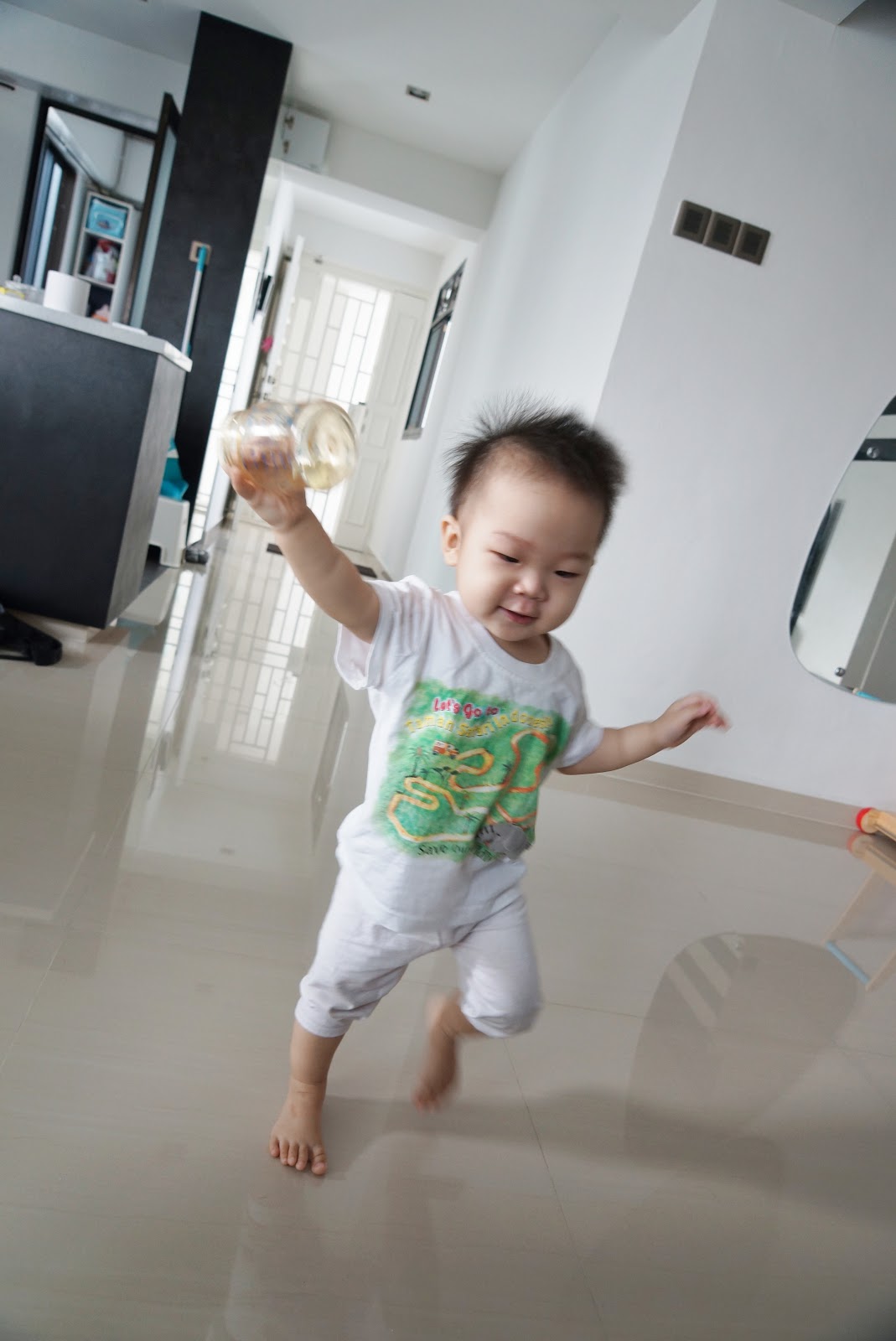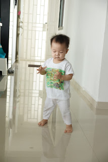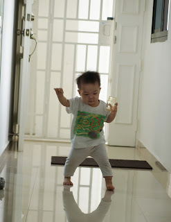 After probably few more days later i wouldn't have another chance to take cute pictures or videos of him walking wobbly, hands swaying in the air like a drunkard. He is improving by leaps daily. =)