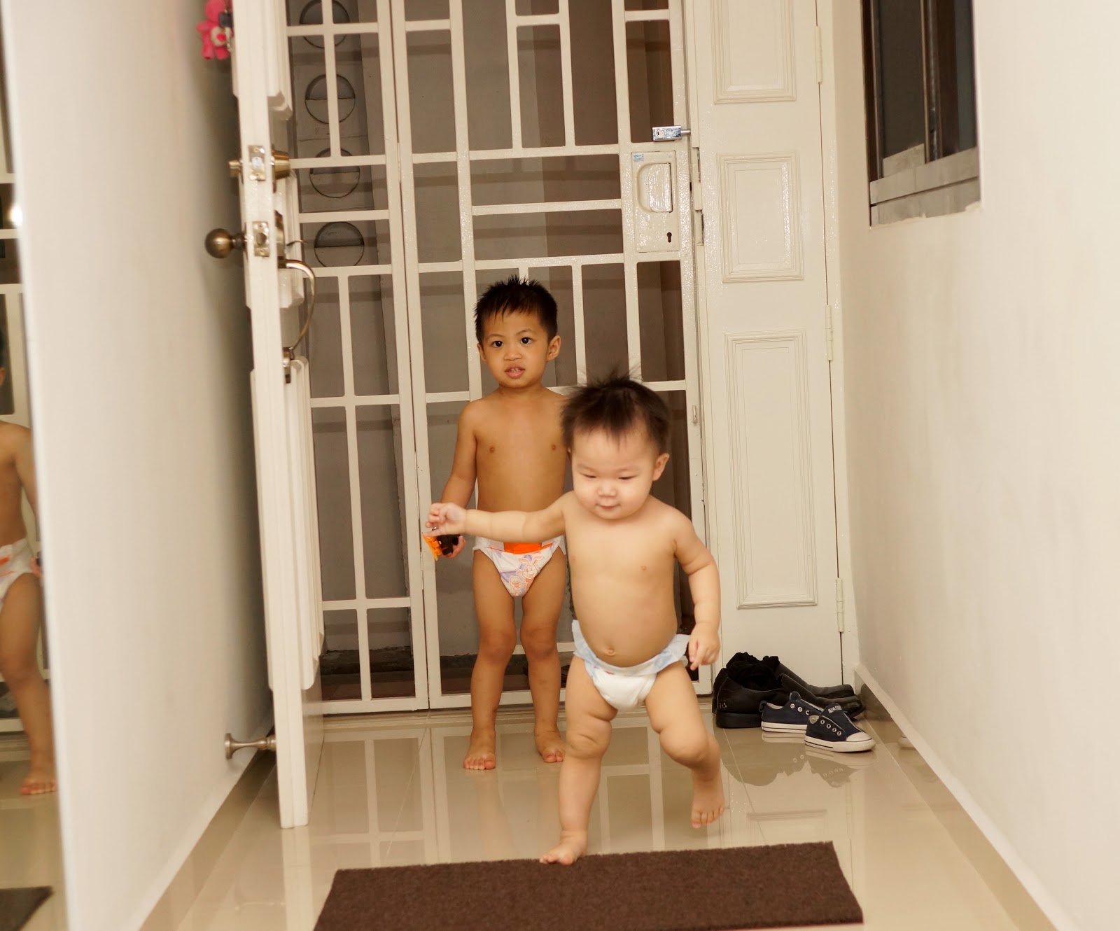 Kieran:"why is Aden kor kor wearing my diaper?"