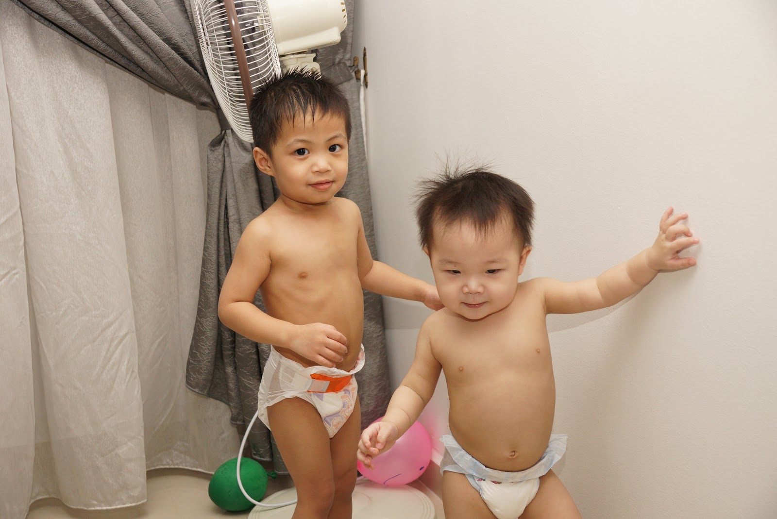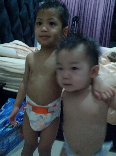 Kieran:"why is Aden kor kor wearing my diaper?"