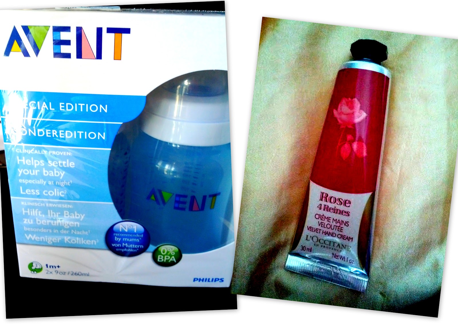Look what hot mama Mj gave me and baby Kieran. The blue milk bottle I've been wanting to buy. It's limited edition, comes in blue and pink colour! and a tube of L'occitane hand cream in rose scent! it smell super nice! the smell is addictive. Even daddy henry also said it nice. Thanks dear! <3