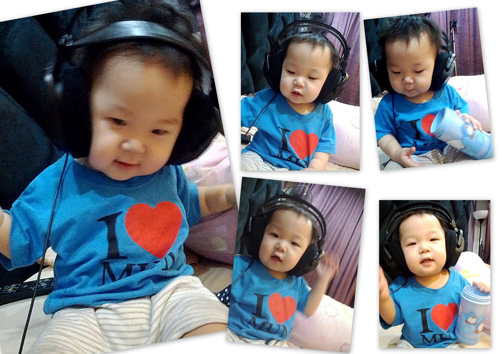 Kieran displayed curiosity when meddling with the head phone, I placed it over his head and praised that he look handsome with it, immediately he smiled happily and refused to take it off!