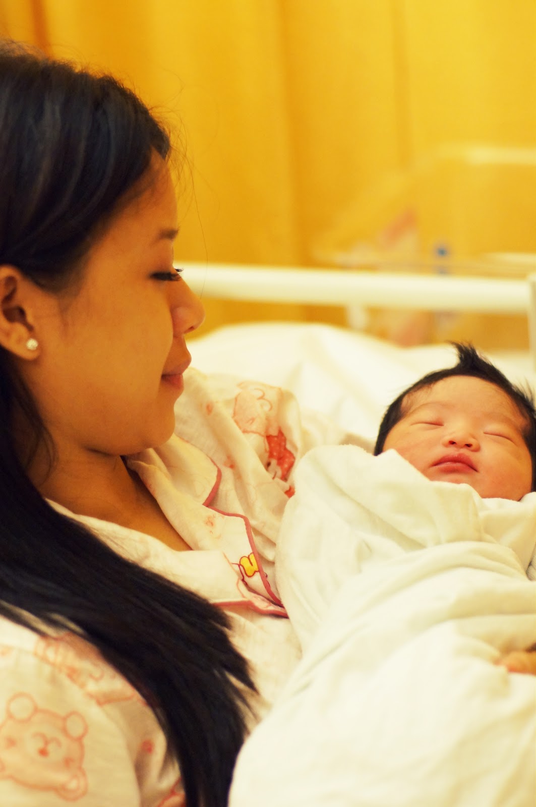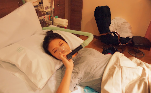 I was wheeled to the delivery suite upon alighting. Dearie requested for epidural from the nurse on my behalf, how well he knows me! but after the nurse checked, she said, "no need epidural, baby is coming out soon" i was already 9cm dilated but my water bag did not broke. (because her face was facing upwards)